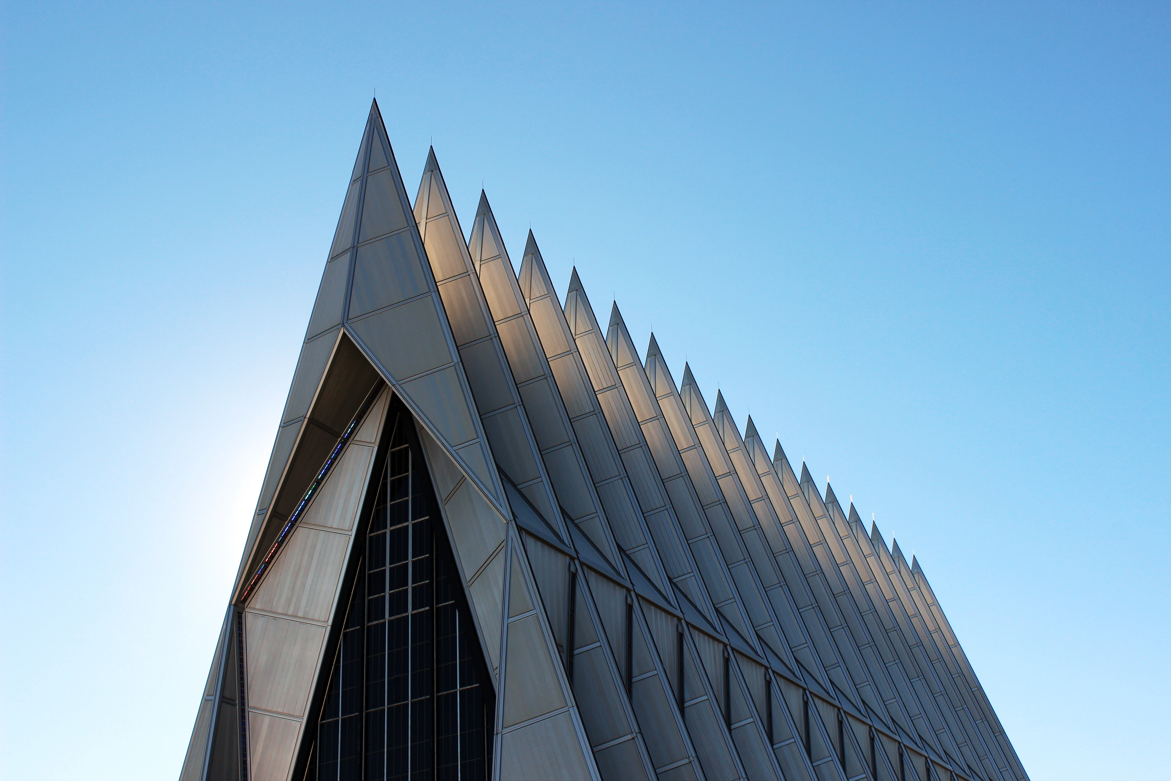 I’ve always enjoyed taking photos, especially when visiting new places. Colorado Springs is beautiful, but the United States Air Force Academy Cadet Chapel is breathtaking. With these photos, I found myself focusing in on all of the lines happening in the architecture of this wonderful chapel. I love how the different angles draw you in and create visual interest. I highly recommend visiting the Academy and this chapel if you’re ever in Colorado Springs.